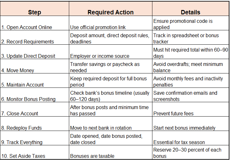 Step-by-Step Instructions for Each Bank Bonus